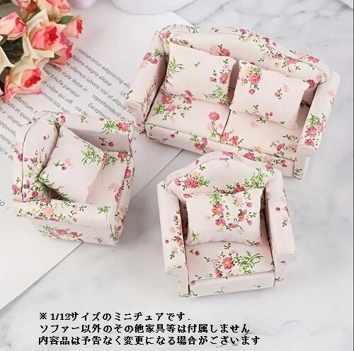 1/12スケールサイズ用 ミニチュア装飾品 美しい花のクラスターソファー3点セット