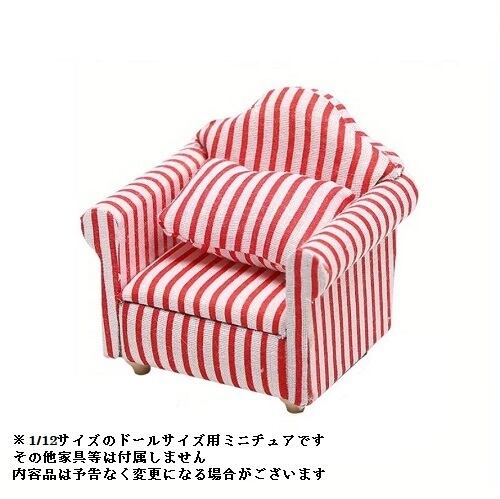 1/12スケールサイズ用 ハウスソファアームチェア 赤ストライプ柄 ミニチュア 装飾品