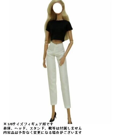 1/6サイズフィギュア用衣装 黒のTシャツ&白のパンツ コスチュームセット
