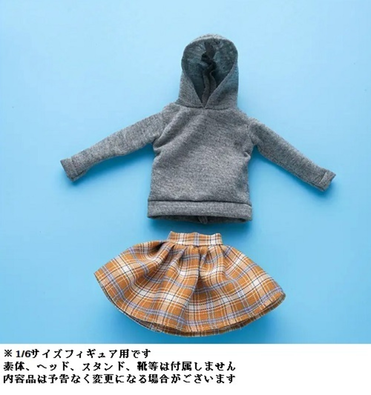 1/6サイズフィギュア用衣装 女性用 グレー色パーカー&スカートコスチュームセット