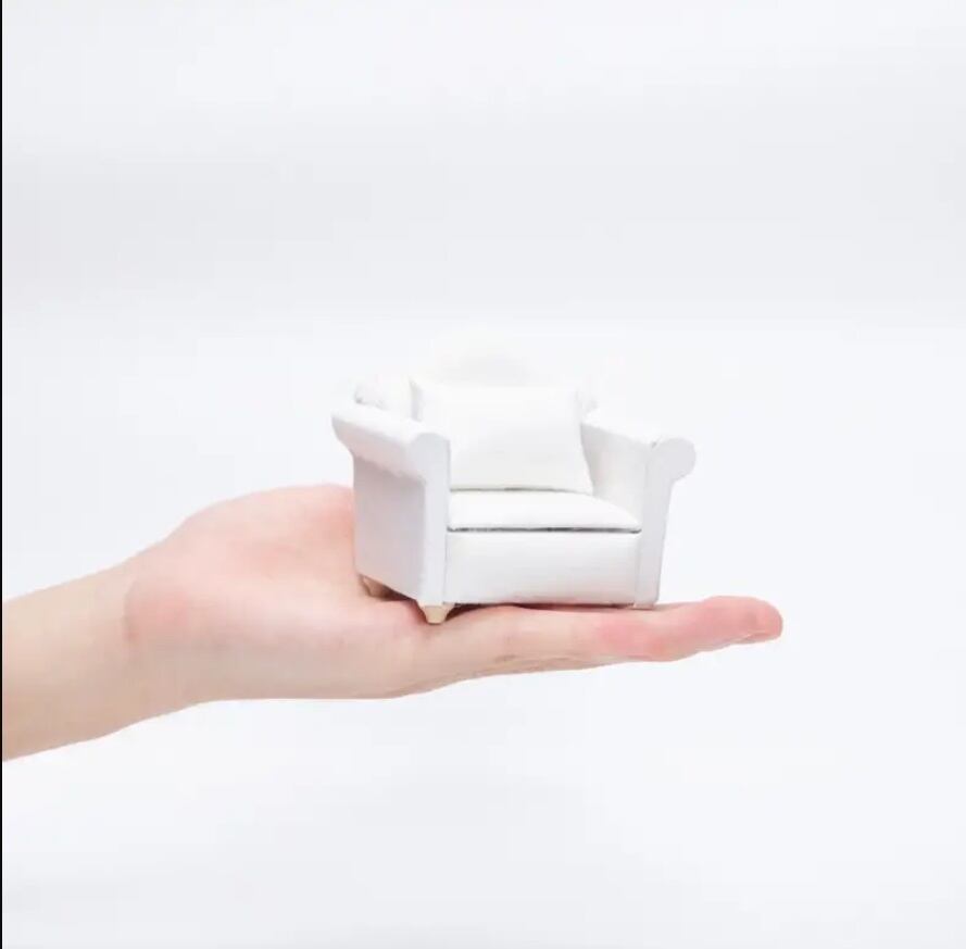 1/12スケールサイズ用 ハウスソファアームチェア 白 ミニチュア 装飾品