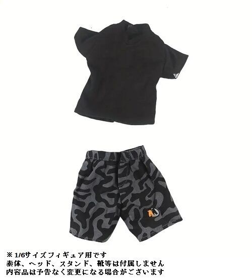 1/6サイズフィギュア用衣装 男性用 黒のカジュアルシャツ&ハーフパンツ コスチュームセット