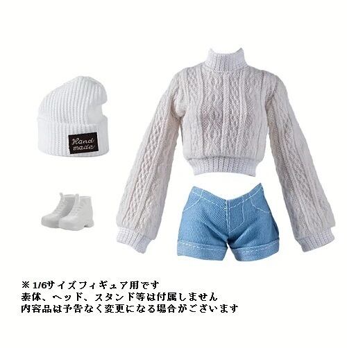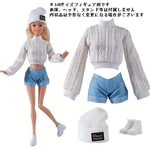 1/6サイズフィギュア用衣装 ロングスリーブニットセーター&ショートパンツ コスチュームセット 白色