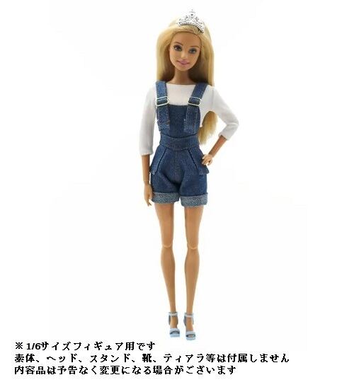 1/6サイズフィギュア用衣装 ホワイトトップス&ダークカラーデニムオーバーオール コスチュームセット