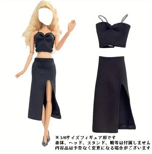 1/6サイズフィギュア用衣装 黒のキャミソール&スリットスカート コスチュームセット