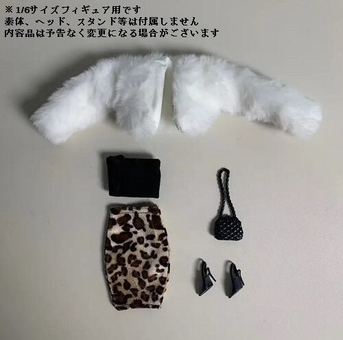 1/6サイズフィギュア用衣装 白のファージャケット&黒のストラップレスチューブトップ&ヒョウ柄スカート コスチュームセット